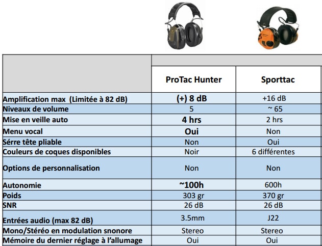 COMPARATIVA SPORTTAC CAZA VS PROTAC HUNTER