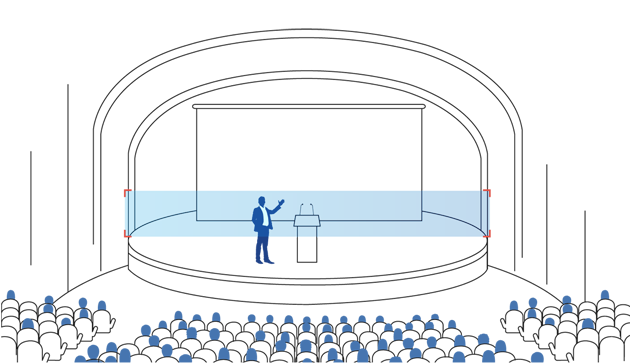 El seguimiento en el escenario permite el seguimiento sin necesidad de control remoto, ya sea transmisión en vivo o grabación. La cámara sigue con fluidez al objetivo gracias a la configuración de la zona de movimiento, que memoriza hasta 8 zonas de bloqueo para garantizar una captura completa de los discursos e intercambios en los que los oradores están acostumbrados a ser móviles.