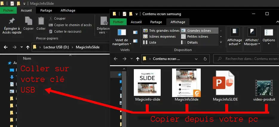 MagicINFO Slide es fácil de usar, es uno de estos software plug&play: simplemente conectando una llave USB (16 GB o menos) a tu pantalla, transmites contenido, sin necesidad de un control remoto ni de realizar ajustes en tu pantalla.