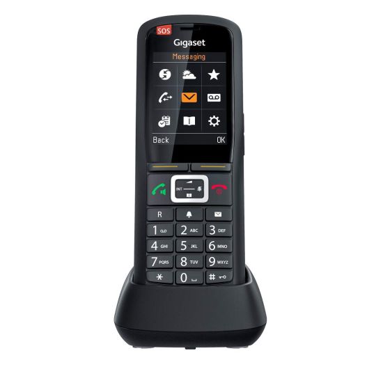 El Gigaset R700H Pro es un teléfono inalámbrico DECT que ofrece muchas funciones profesionales, incluido sonido HD, un vibrador y perfiles de audio variados y configurables. IP 65, el teléfono es resistente al agua y al polvo, y su carcasa de goma es resistente a caídas y golpes.