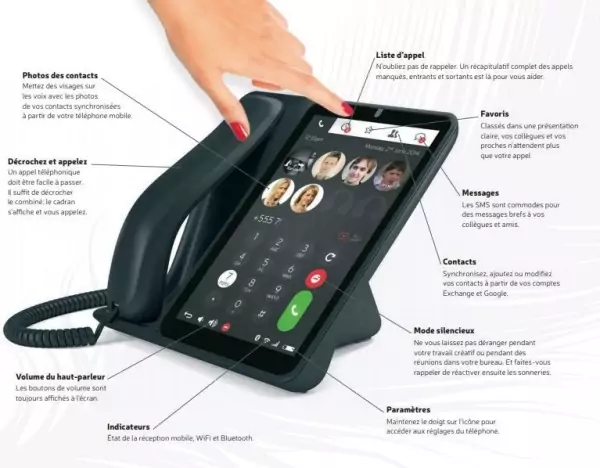 Este tipo de teléfono fijo con tarjeta SIM es ideal para empresas, para reuniones en videoconferencias con su pantalla táctil interactiva de 8 pulgadas, su cámara frontal de 0.3 Mpx y su micrófono de alta sensibilidad.