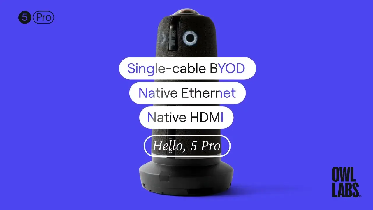 El Meeting Owl 5 Pro Incluye un sistema de captura panorámica de 360° Con inteligencia artificial integrada para opciones de encuadre avanzadas. El Sistema de Inteligencia del Búho™ le permite identificar y enfocar automáticamente la imagen sobre el interlocutor activo combinando visión, voz y movimiento