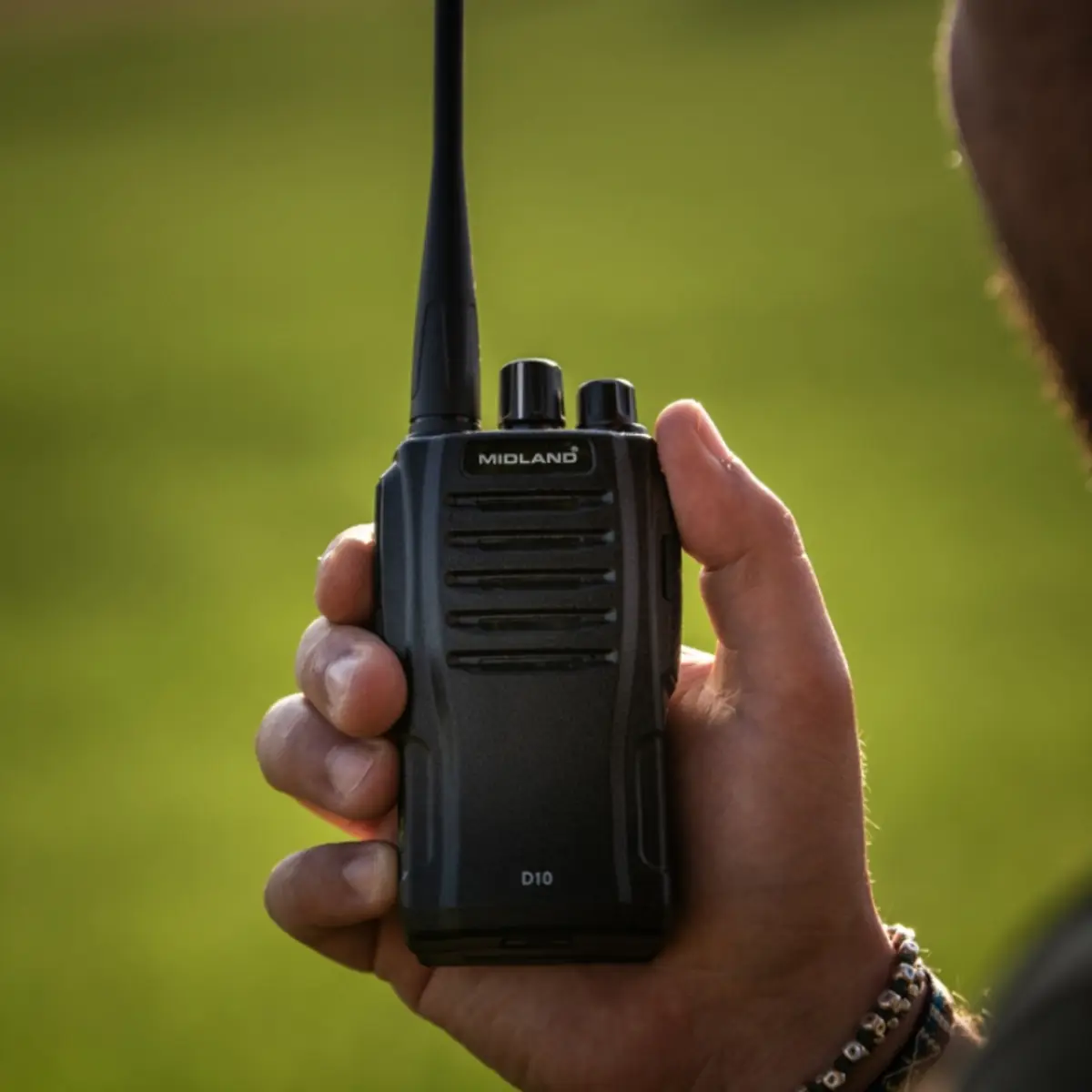 Primo del G10 y G13 Pro, el Midland D10 se impone como una solución de comunicación híbrida eficaz. Bi-banda, esta radio utiliza la banda analógica tradicional pero también la tecnología digital DMR446. Operando sin licencia en frecuencias libres, este terminal se distingue por su excepcional versatilidad con 256 canales programables distribuidos en 16 zonas, ideal para la formación de grupos sin riesgo de interferencias.