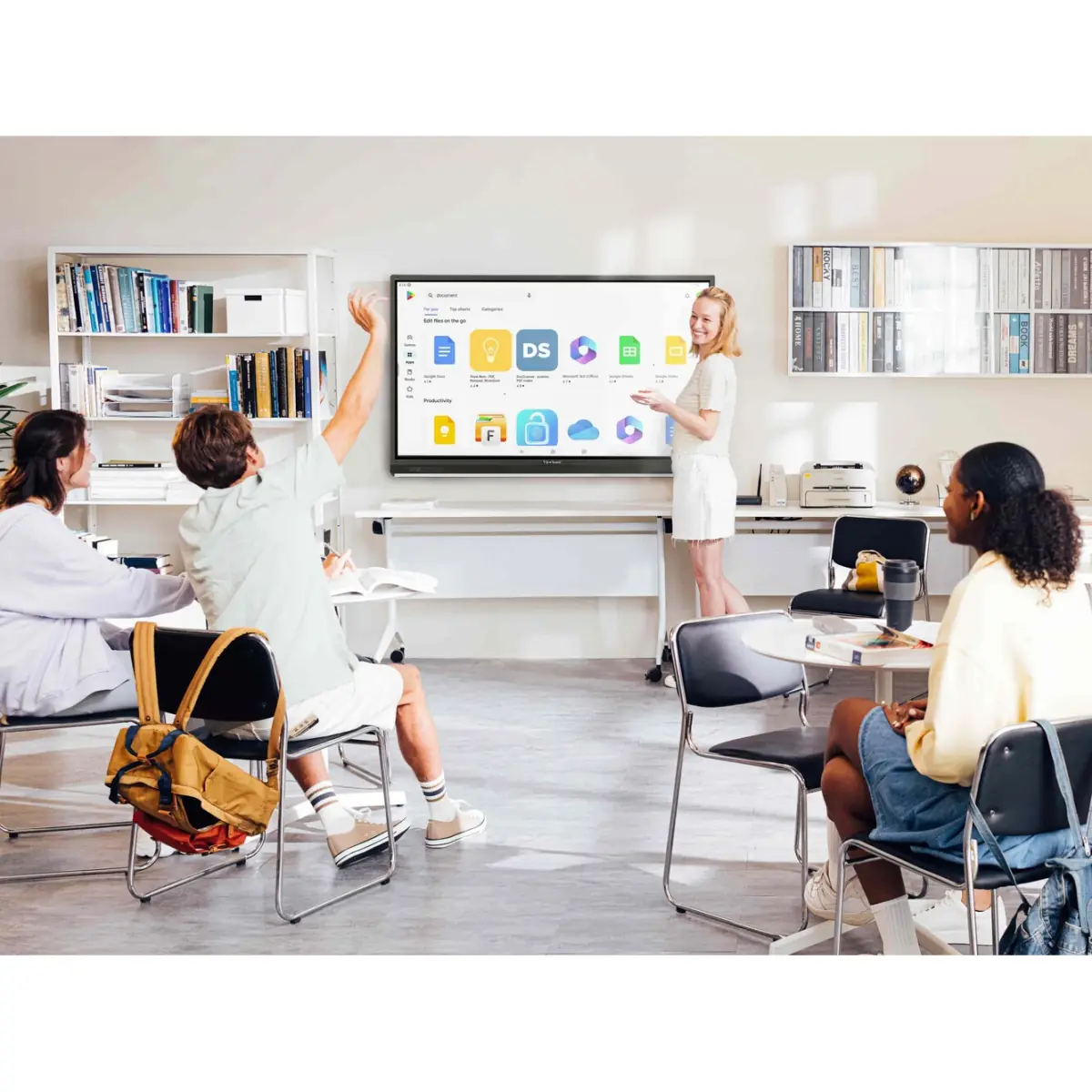 Sin embargo, a diferencia de otras pizarras interactivas de la marca ViewSonic, esta última integra las aplicaciones nativas del Google : Google Drive, Google Workspace, Google Chrome, YouTube y muchas otras. Google También se agregó Play Store para permitir a los usuarios descargar cualquier aplicación que deseen de manera segura.